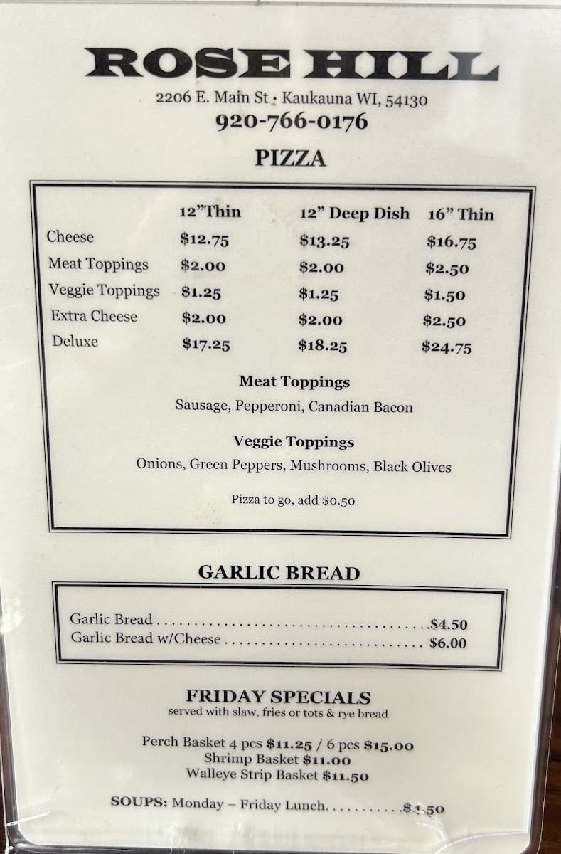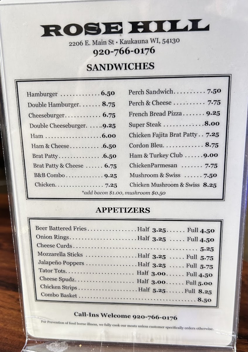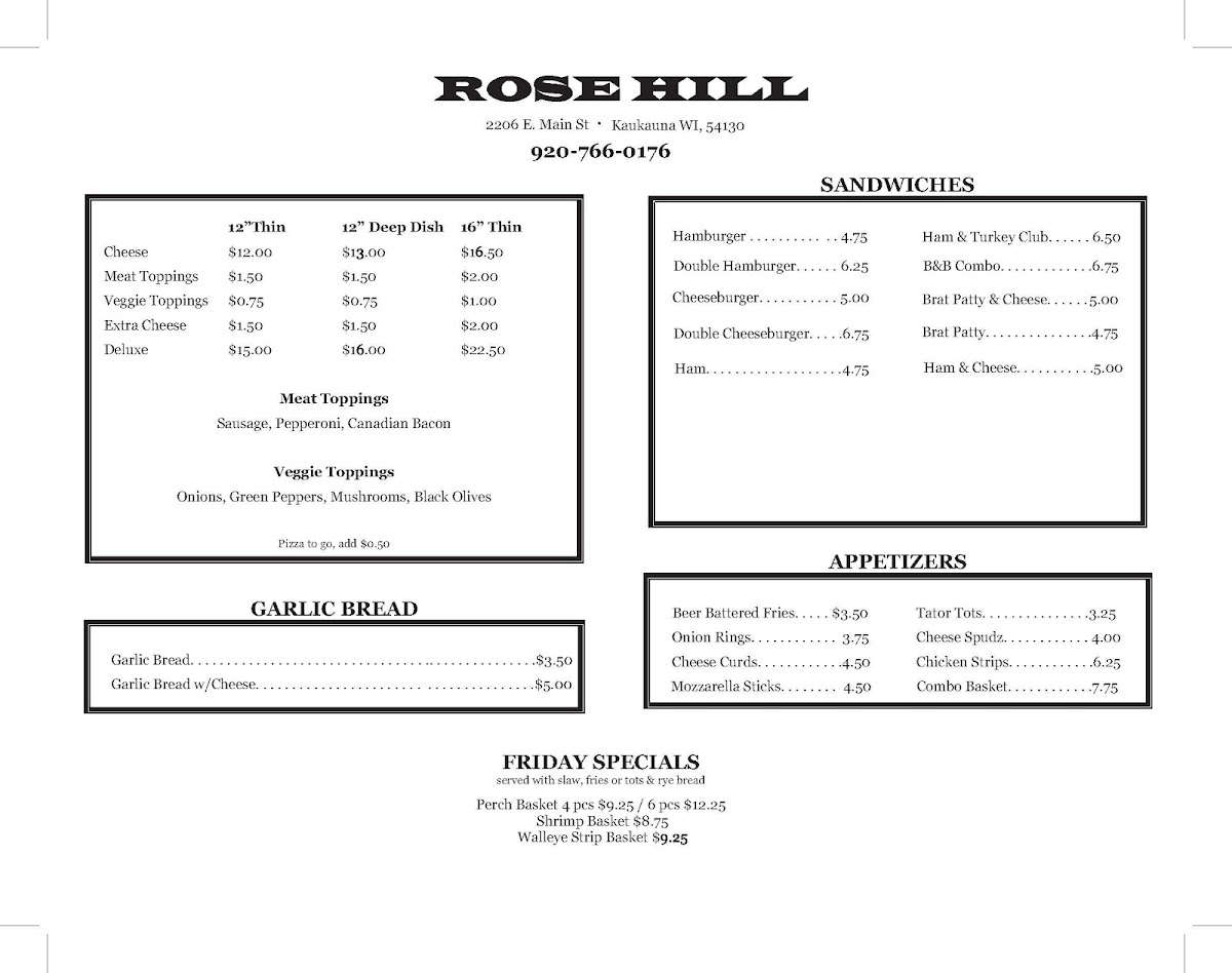 The Rose Hill Bar offers a straightforward and welcoming menu that fits perfectly with its local bar and grill vibe. Whether you're stopping by for a casual lunch, a relaxed dinner, or late-night takeout, the menu centers on comforting, familiar dishes served in generous portions.