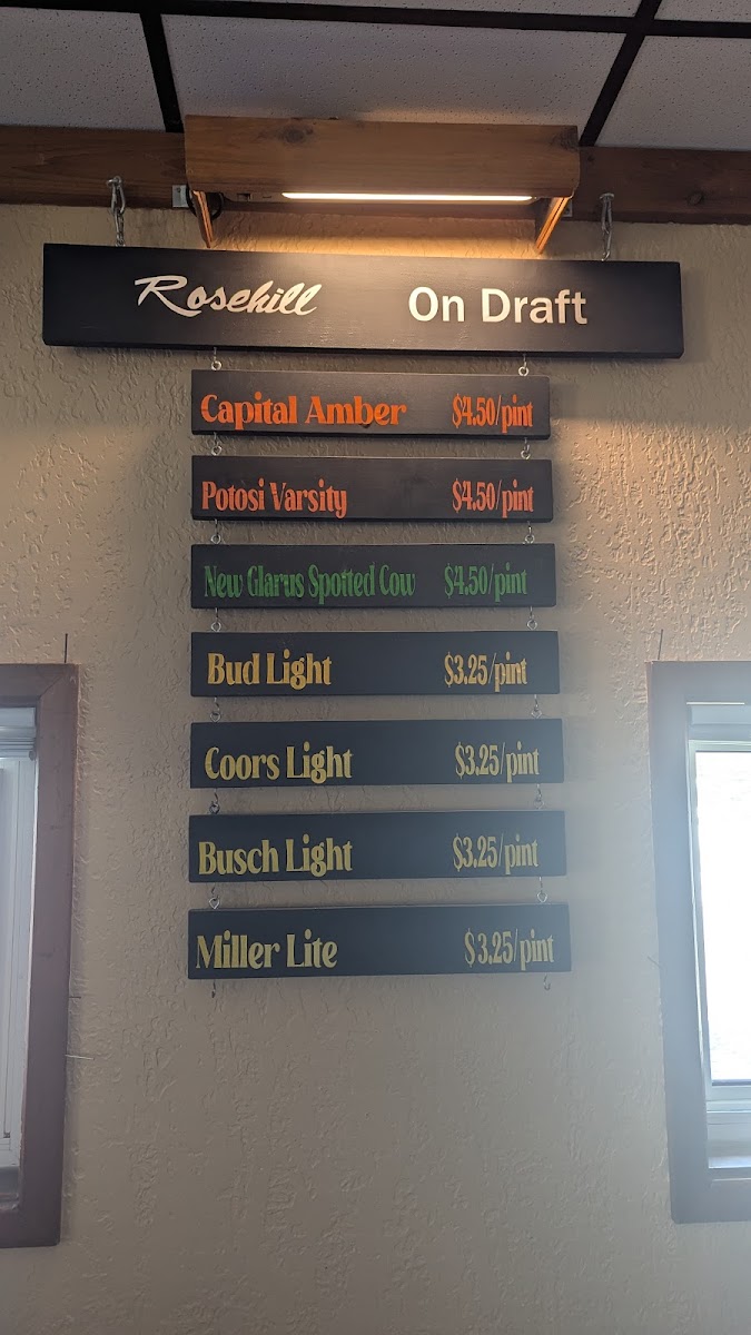 Rose Hill Bar Menu